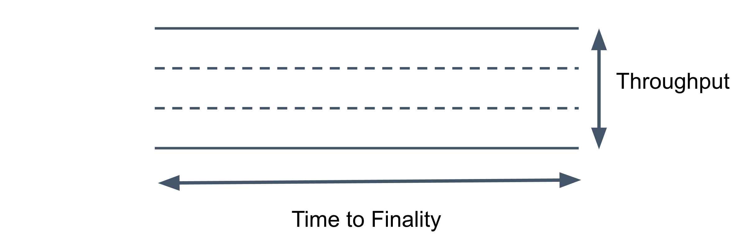 Our goal is to build highways with many lanes (high throughput) but that bring us to our destination as fast as possible (short time to finality).